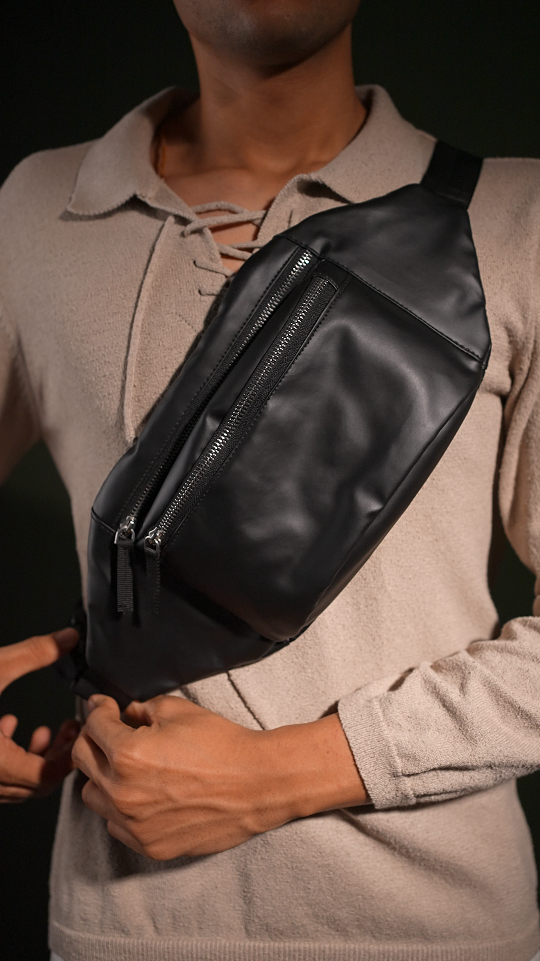 - Syutm Dvau Metal Zip Unisex Premium Leather Waist Pack Multi Pocket Travel Handy Hiking Zip Pouch Elegant Style Document Money Phone Belt Sport Bag for Men and Women Adjustable Strap (Charcole Black)